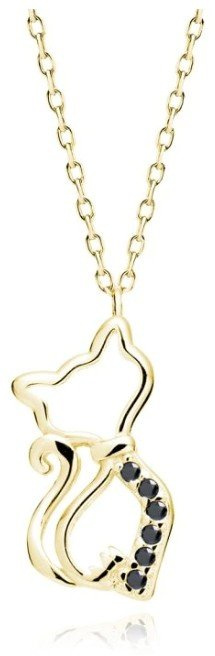 Elegantní stříbrný náhrdelník s motivem kočky, který podporuje vaši lásku k těm nejmilejším společníkům. Šperk je potažen 14K zlatem a doplněn černými zirkony, které mu dodávají jemný a stylový vzhled.